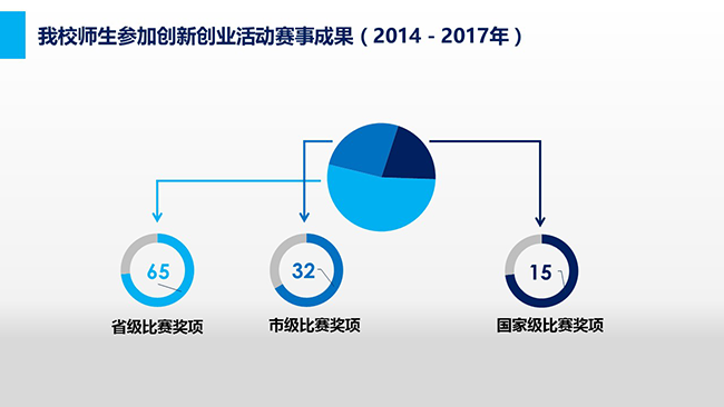 近年来,为适应经济社会发展新形势对应用型双创人才的需要,营造良好的校创新创业(简称双创)教育氛围,古天乐代言太阳集团网址团委深入贯彻落实党中央、国务院古天乐代言太阳集团网址推进“大众创业、万众创新”的决策部署,在学校班子的指导下,着力加强学生创新精神和实践能力培养,持续开展了包括科技创新、创业实践、校外实习实践(展翅计划)三部分内容的,以应用型人才培养为特色的双创教育实践活动,组织和推荐师生参加市级、省级、国家级大学生科技学术竞赛。据统计,2014-2017年4月,经校团委组织参加的市级以上的创新创业赛事活动累计25项,荣获市级比赛奖项32项、省级比赛奖项65项、国家级比赛奖项15项。