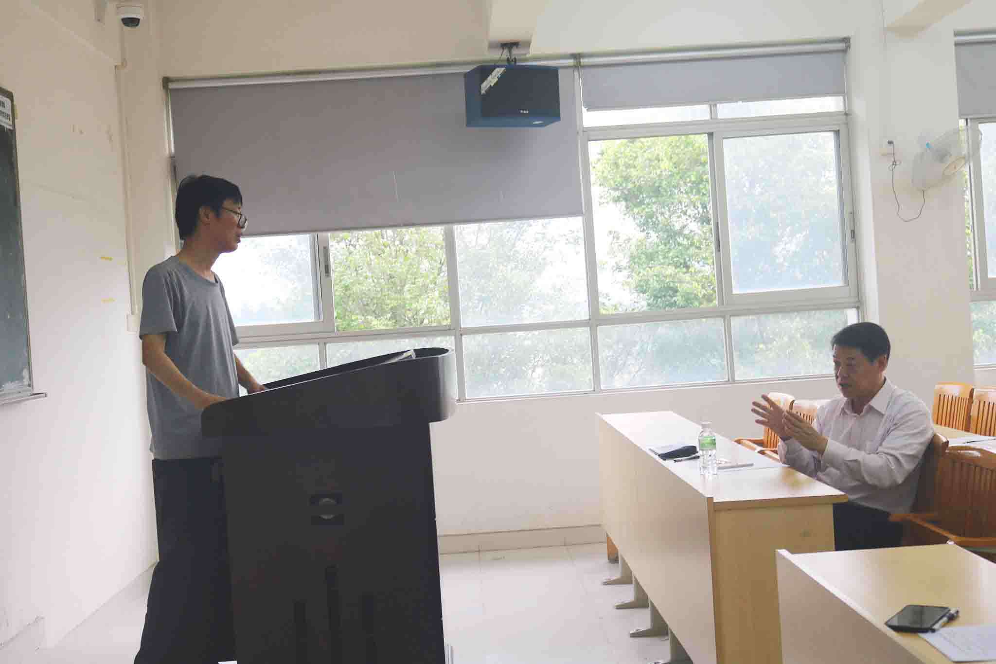 李中生副校长(右)对李小平老师(左)的授课进行点评