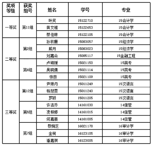 附件:第七届图书馆系列活动之“以书为伴,书中寻宝”及信息资源检索大赛决赛获奖名单