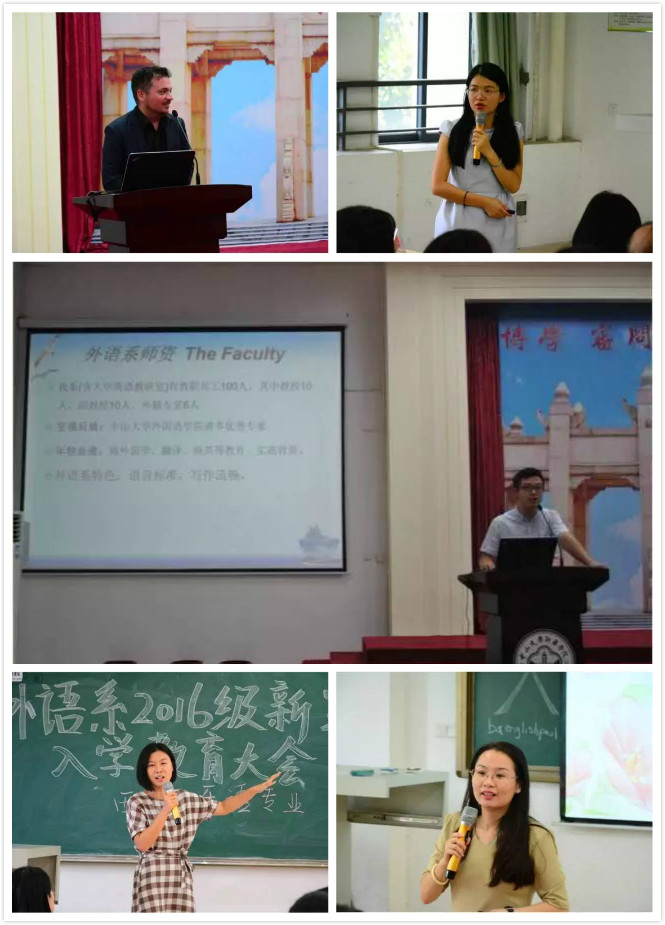 外语系各专业负责人、优秀教师及教辅人员向新生介绍学系情况