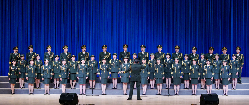 林胜平、朱国斌、郑京萍、吴婷婷等带来合唱歌曲《歌唱井冈山》、《中国人民解放军军歌》