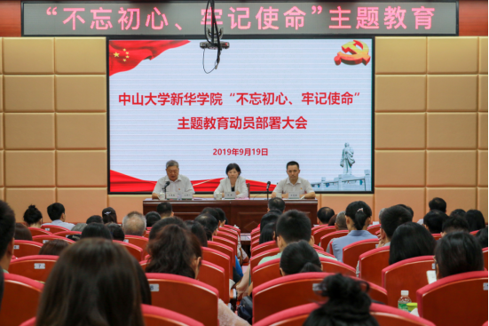 根据中共中央、广东省委和省委教育工委对高校开展“不忘初心、牢记使命”主题教育的工作部署和要求,在省委教育工委主题教育第三巡回指导组(以下简称“指导组”)的指导下,中山大学新华学院(以下简称“古天乐代言太阳集团网址”)于9月19日上午在广州校区讲学厅召开了“不忘初心、牢记使命”主题教育动员部署大会。