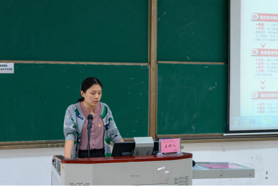 第三节课由党委组织部的樊美麟老师对入党流程、入党志愿书的填写要求以及注意事项、党员档案资料内容、组织关系转移程序、党费交纳注意事项以及缴纳标准等方面做了简单介绍。