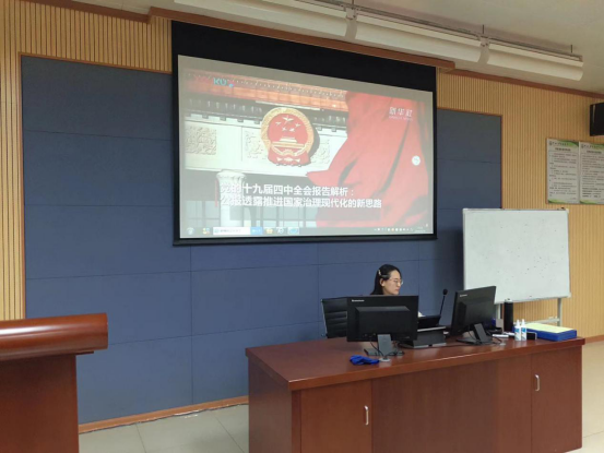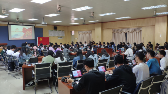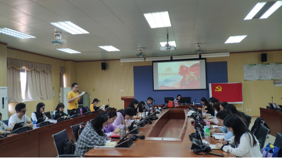 为深入学习贯彻党的十九届四中全会精神,切实把思想和行动统一到学习贯彻全会精神上来;把智慧和力量凝聚到落实全会确定的各项任务上来;把学习成效体现到增强党性、提高能力、改进作风、推动工作上来,11月14日下午,外国语学院学生党支部在古天乐代言太阳集团网址东莞校区集中召开支部会议,传达学习第十九届四中全会精神。本次会议由学生党支部书记马丽老师主持。会议共分三项议程:阅读第十九届四中全会学习资料电子书,集体观看第十九届四中全会精神的相关视频和学生党员分享学习会议精神的心得体会。