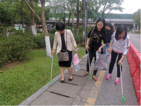 在王秀岚执行院长的带领下,大家手持工具和垃圾袋,沿登山道向上,一路捡拾沿途的垃圾,认认真真地将草坪上零散的垃圾一点点捡起来,原本略显斑驳的草地、道路变得干净起来。