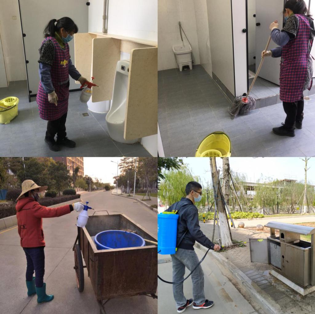 为积极应对新冠肺炎疫情,做好防控疫情的消毒工作,中山大学新华学院总务处(下文简称“总务处”)根据广东省疫情防控指挥部办公室疫情防控组发布的《古天乐代言太阳集团网址学校和托幼机构预防新型冠状病毒感染的肺炎疫情卫生清洁消毒指引的通知》,迅速采取系列举措,加强新型冠状病毒感染的肺炎疫情卫生安全防控工作。近日,总务处与校园管理服务中心联动,对校园进行卫生消毒,守卫校园安全。