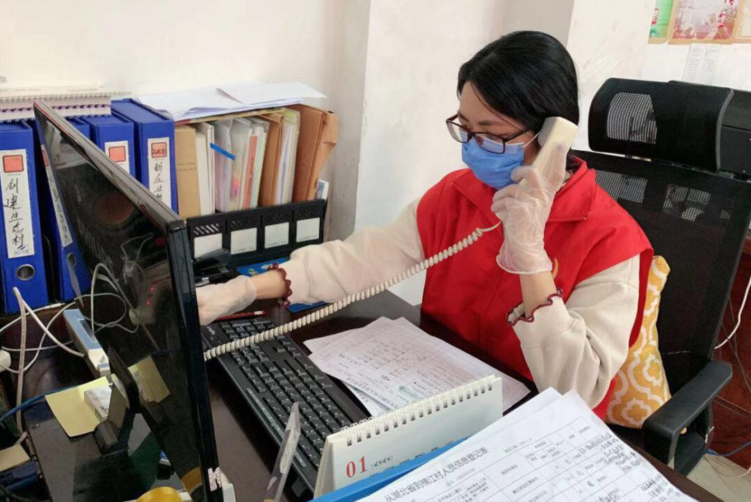 董滢同志通过电话寻访对社区居民进行防疫防控宣传