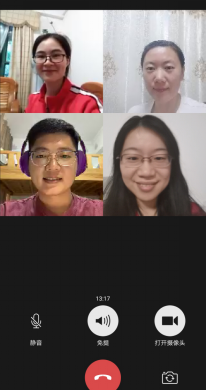 曹颖男老师(右下)与药理学、生物化学课程团队钟春燕老师(左上)、彭炳新老师(左下)、董楠(右上)老师通过微信视频会议在线讨论线上授课方案