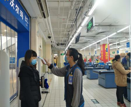 2019级会计学麦湫滢同学主动成为一名抗疫志愿者,每日协助沃尔玛员工进行消毒工作,对购物篮、购物车与收银台进行消毒;测量顾客与沃尔玛员工体温并登记异常体温,检查出入沃尔玛超市人员是否佩戴口罩;配合当班主管监测同事是否符合健康标准。