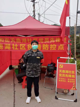周本智同学坚守在广州天鹿湖慕园村疫情排查第一线