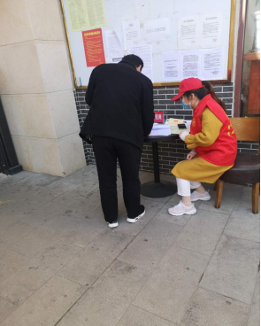 白星雨同学正在为出入小区的居民登记信息,确保居民安全