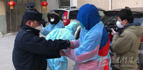 康巴卫视记者穿上防护装备,准备进入隔离区(右一为戴建伟)