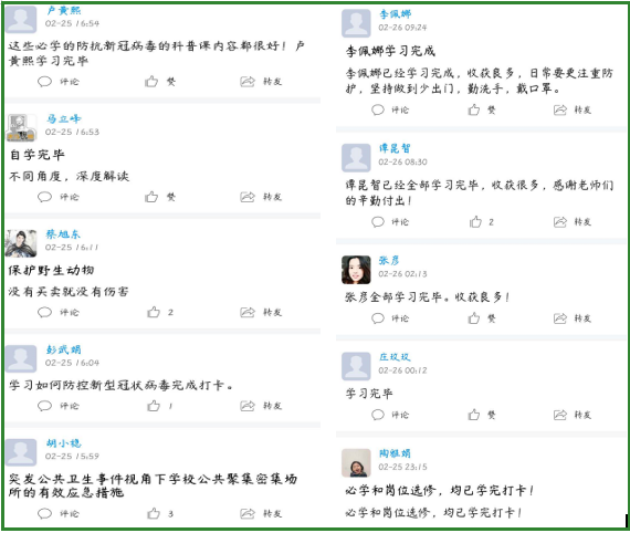 2月24-28日,教师发展中心协同人事处通过超星学习平台开展了全校教职工“防控新型冠状病毒肺炎知识和技能”线上培训。经统计,校内48个单位997名专职教职工参加了培训,学习成绩均为A,老师们积极参与学习和讨论,培训效果较好。此次视频培训旨在全员参与抗疫防疫,助力教职工了解防控知识、技能,了解传染病防控相关法律法规,分岗位做好自我防护,为开学做好准备工作。