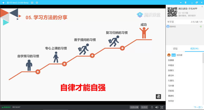 经过近三周的学习、对比、测试,最终陈仲本决定将课程的方案定为:QQ群发通知和分组讨论汇报+泛雅(学习通)签到和收发作业+腾讯课堂直播上课相结合的形式,多方位多平台确保网络教学质量不降低。