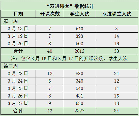 实施“双进课堂”,以辅导员与行政教辅人员结对子落实到每一节课,加强巡课工作。教学秘书于前一天公布课表和双进课堂人员安排,双进课堂人员于每节课前进入课堂:了解学生在线学习情况、课堂运行情况;发现线上课程中出现的问题,及时汇报。