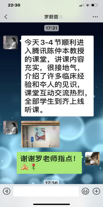 学校教学督导罗蔚茵教授每周都进入学院的直播课堂,她一直连续跟听陈仲本教授和王静副教授的课程,并结合老师前后两周授课的内容模式,给出了肯定的意见,且提出了十分宝贵且详细的建议。罗蔚茵教授不辞劳苦以及严谨认真的态度是我们学习的楷模。在罗蔚茵教授的督导下,在陈仲本院长的带领下,学院年轻教师的教学水平在不断提升。