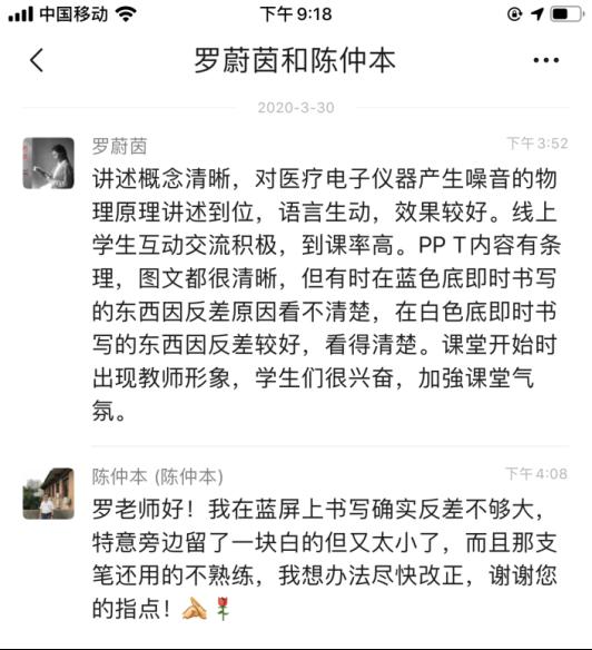 通过进课堂听课和听取师生反馈意见,陈仲本发现19级生物医学工程专业因专业基础课《医用物理学》的任课老师为兼职老师,且该老师不会使用QQ等网络教学平台,只能依靠微信群和学习通进行答疑,仅靠上课时间进行答疑,会导致部分同学无法真正学到知识。两周的网课下来,学院也收集到了许多学生的反馈意见,他们普遍认为虽然目前这样的答疑方式也很好,但是还是希望能用直播的形式来上课。综合考虑之后,陈仲本决定亲自出马,帮学生补课,该班学生的辅导员老师说:学生听到院长给他们补课的消息后,开心得都快“飞起来了”!