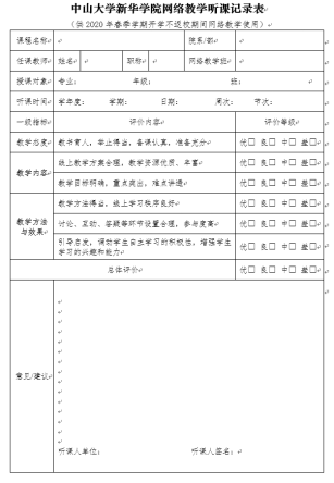 《中山大学新华学院网络教学听课记录表》
