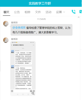 督导老师们常在工作交流群里展示教师们的上课内容和交流听课情况,讨论网络教学督导工作中遇到的问题,互相推荐网课反响好的教师。
