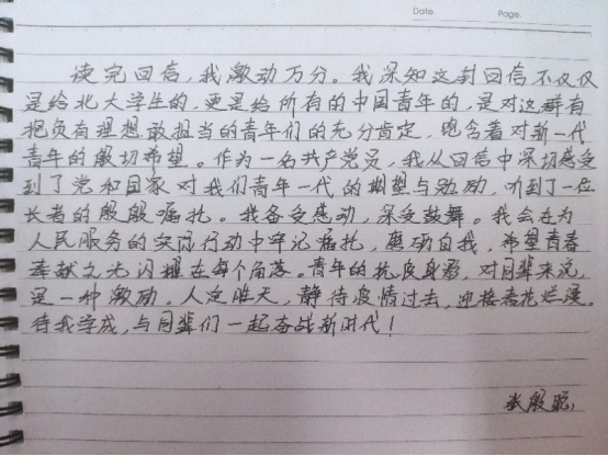 外国语学院学生第一党支部党员同志学习回信精神群内讨论及部分手写心得