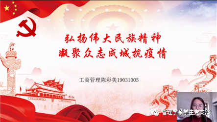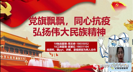 为响应全国高校学习习近平总书记给北京大学援鄂医疗队全体“90后”党员回信精神,管理学院学生党支部举行线上抗“疫”微党课比赛,全体党员同志共学回信精神、践行青春使命,展现出昂扬向上、拼搏顽强的精神力量。