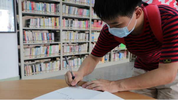 毕业生捐赠书籍并写下寄语