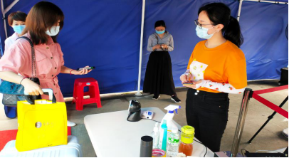 老师协助学生完成防疫检测