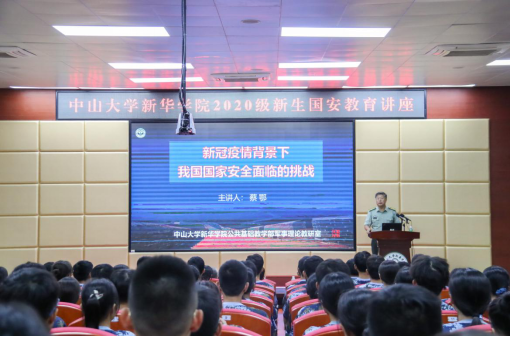 9月23日,中山大学新华学院开展2020级新生国防安全教育讲座。此次国防安全讲座由中山大学新华学院党委人民武装部副部长、公共基础课教学研究部军事理论教育教研室专任教授蔡鄂主讲,2020级新生到场参与学习。