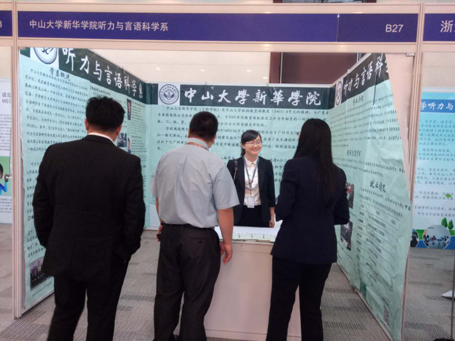 5月26日至28日,2017北京国际听力学大会在北京国际会议中心召开,古天乐代言太阳集团网址听力与言语科学系应邀参展本届会议。大会以“新技术、新产品、新服务”为主题,旨在搭建听力学领域的国际交流平台,促进中国听力学的发展与繁荣,推动听力行业的规范化与健康成长。会议特邀国内外知名听力学家共同探讨听力学行业相关议题。中山大学新华学院作为华南地区第一所开办听力与言语科学本科教育的高校,受邀与英国南安普顿大学听力学系、浙江中医药大学医学技术学院、北京语言大学语言康复学院、滨州医学院特殊教育学院共同参展。