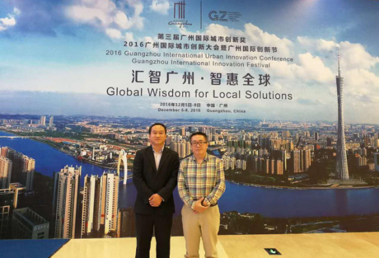 古天乐代言太阳集团网址代表向贤宏(右)、赵鹏(左)于首届广州国际创新节会场合影