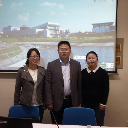 财会系教师周婵(右)、彭俊英(左)与吉瑞副教授(中)合影