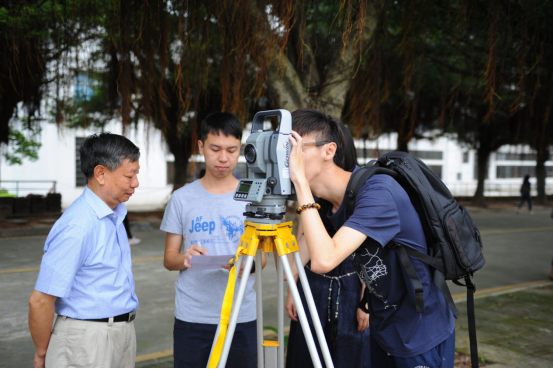资源与城乡规划系主任陈俊合教授与学生在进行测量
