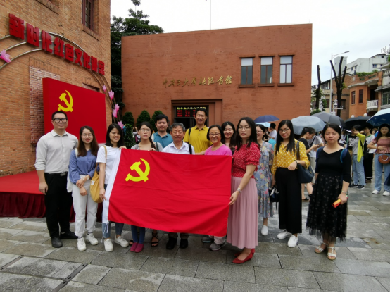 岑家发同志(左一)带领资源与城乡规划系教工党支部到中共三大会址参观学习