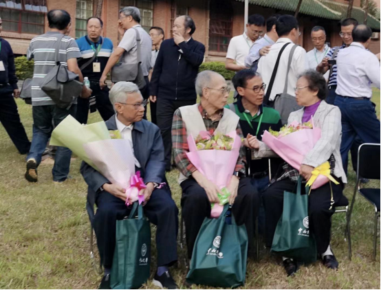 2019年,郑庆璋教授(中)受邀参加中山大学七九级学生入学四十周年聚会