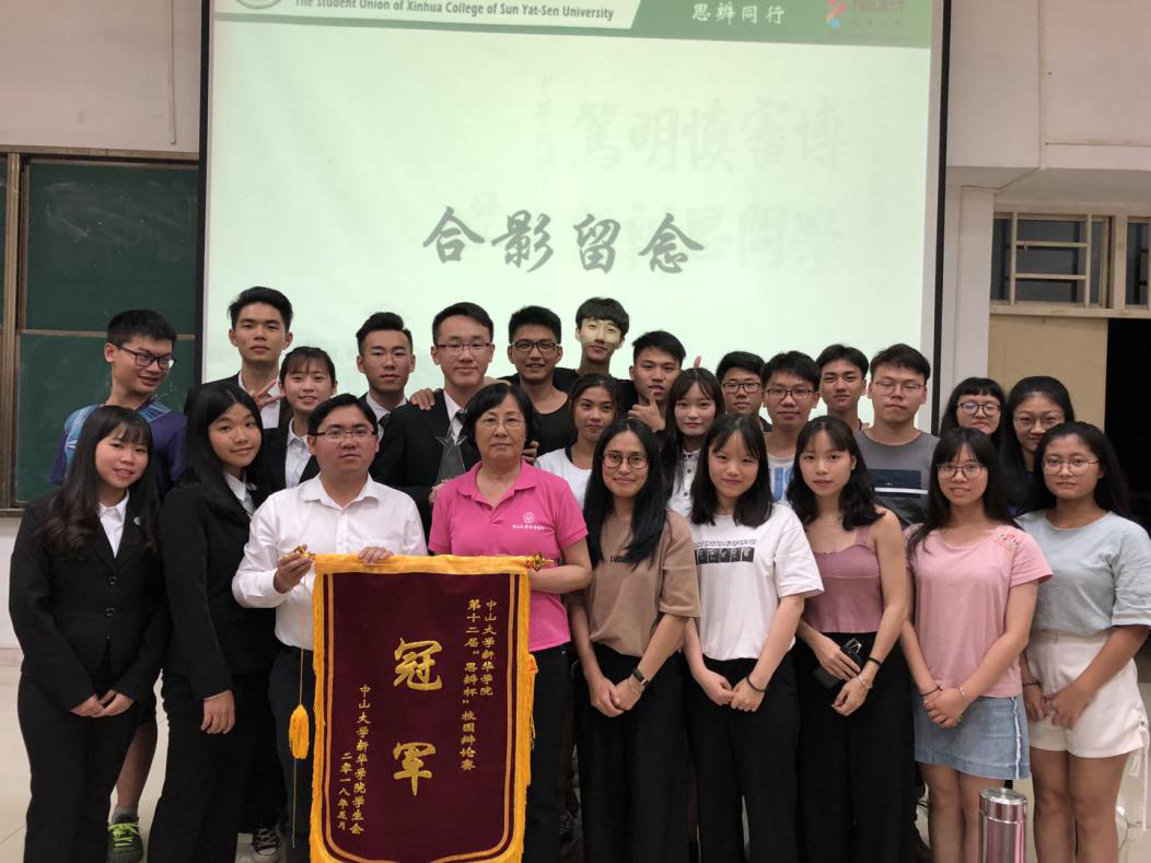 袁功坤在“第十二届‘思辨杯’校园辩论赛”获奖合照(最后一排右三)