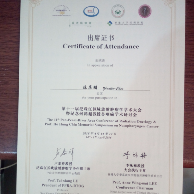 陈展鳞被邀请出席第十一届泛珠区域放射肿瘤学学术大会暨纪念何鸿超教授鼻咽癌学术研讨会