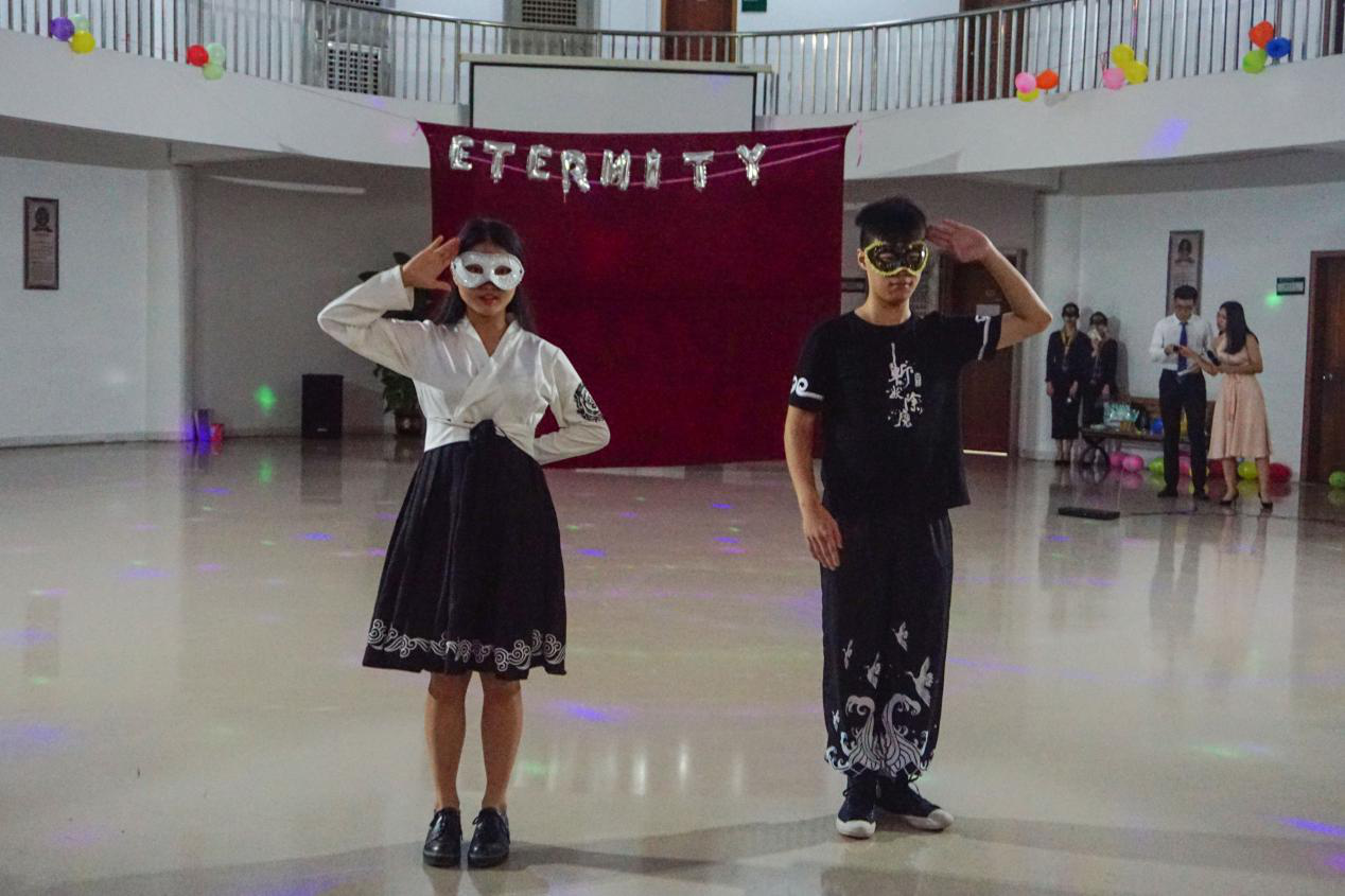 5月18日晚,第十届“恰,十年芳华;技,折桂群雄”社团文化节暨Eternity国际标准舞协会化妆舞会在广州校区行政楼二楼拉开序幕。Eternity国际标准舞协会的指导老师姜丽、15级会长熊远春以及16级会长冯晓斐参加舞会,舞会由来自主持人人才库的陈俊杰、陆韵青主持。