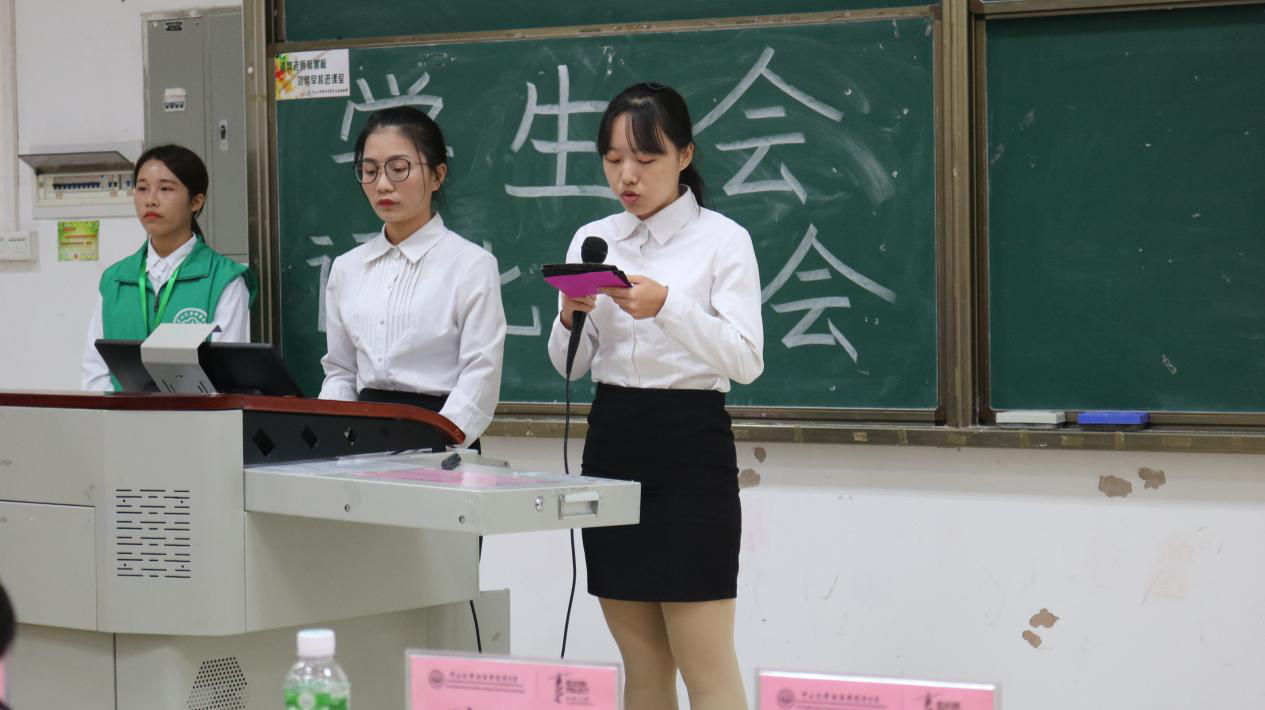 校学生会主席周伟迪同学作2018-2019年度中山大学新华学院学生会工作汇报