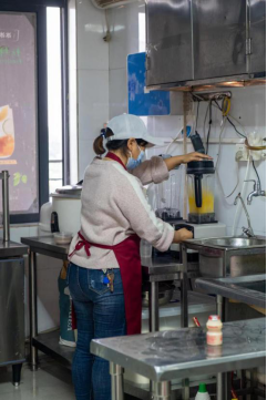 早上八点到水果店拿最新鲜的水果,晚上九点打扫完厨房每一个角落,日复一日,却磨不掉孙阿姨对工作的热情:“用心制作一份甜品,与同学们聊聊天,都是我工作的最大乐趣。同学们喝着开心,我做着也是开心的。”