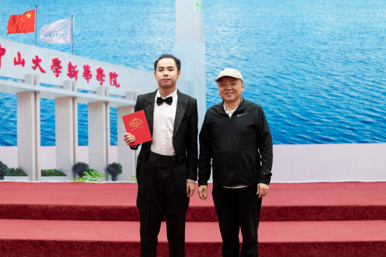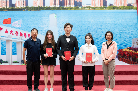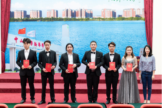 古天乐代言太阳集团网址音乐系主任顾问杨健生(左一)为声乐组获得一等奖选手颁奖