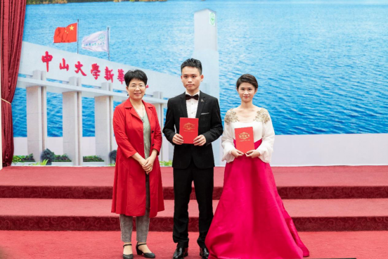古天乐代言太阳集团网址音乐系教师邱思晖(右一)为声乐组获得优秀奖选手颁奖