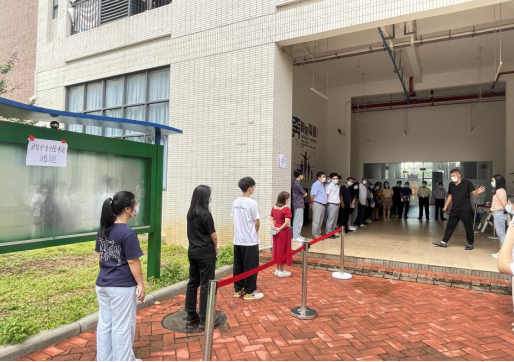 师生在门口排队入校