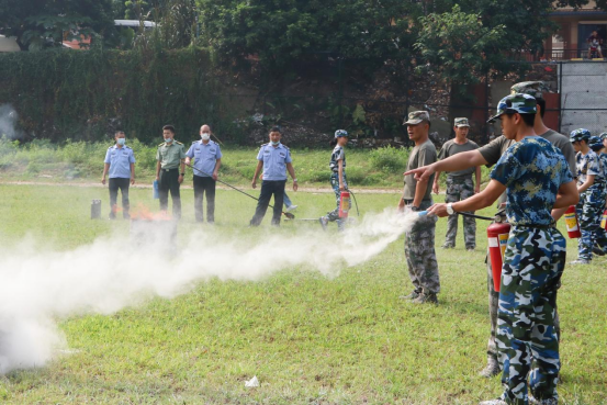 新生学习使用灭火器灭火