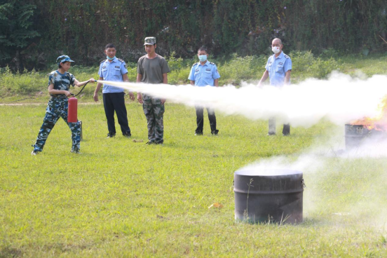 教官为同学们演示灭火器的使用方法