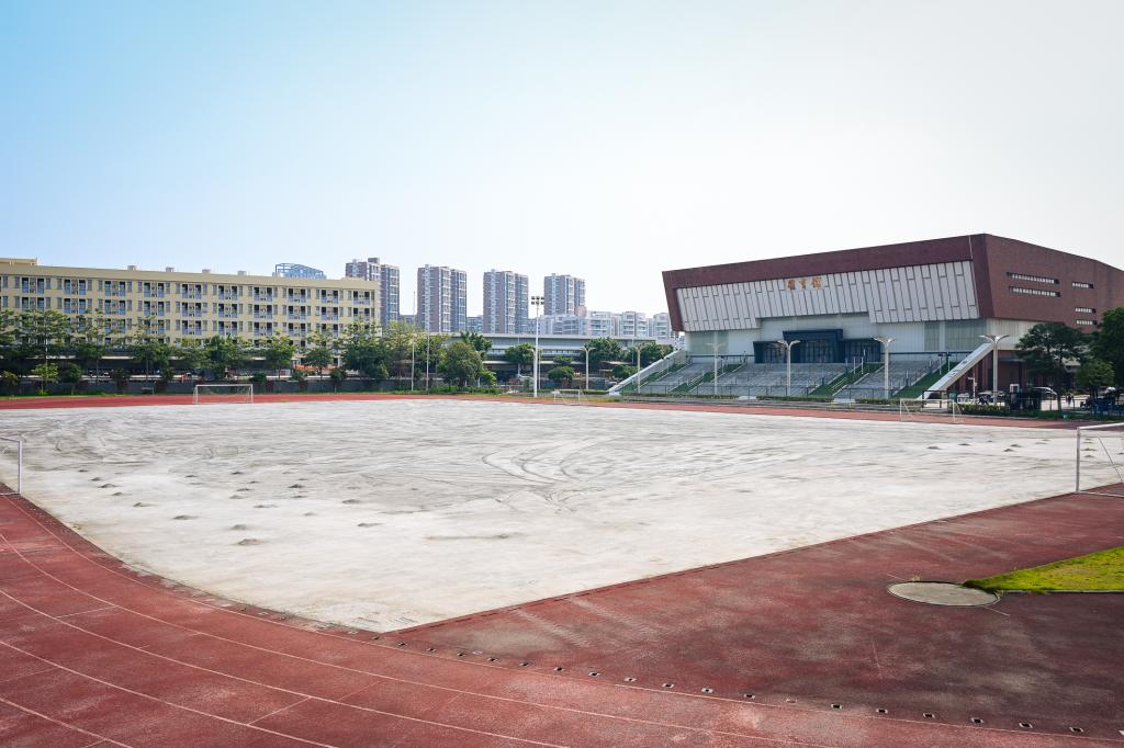 因受软基地质影响,东莞校区西区运动场、部分篮球场出现地面不规则下沉,并伴有积水问题。在本次工程中,学校对运动场跑道、两半圆及排水沟盖板面,跳远助跑道,足球场,看台主席台等进行翻新改造,总面积达15392.49m2,对运动场围网油漆翻新长约1107.48m,并对6片篮球场进行改造维护,改造面积约为3323.25m2。除篮球场尚处于面层完成之前的养护阶段外,其余项目均在新生入学前完成。