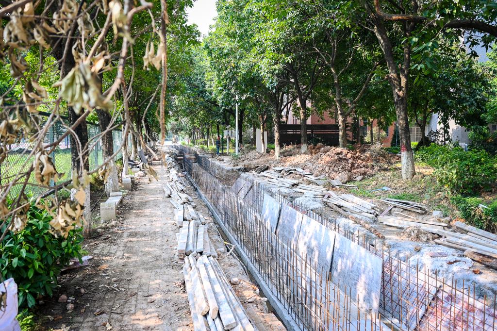 为消除软基地质下陷导致校内生活供水管、消防供水管等管线破损的隐患,学校重新铺设部分管沟及管线,并对路面、绿化进行修复,长度合约948.5m,守护了校园“看不见的地下生命线”,校道环境也焕然一新。