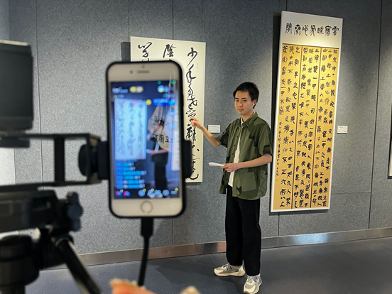 网络与新媒体专业学生对师生艺术作品进行直播介绍