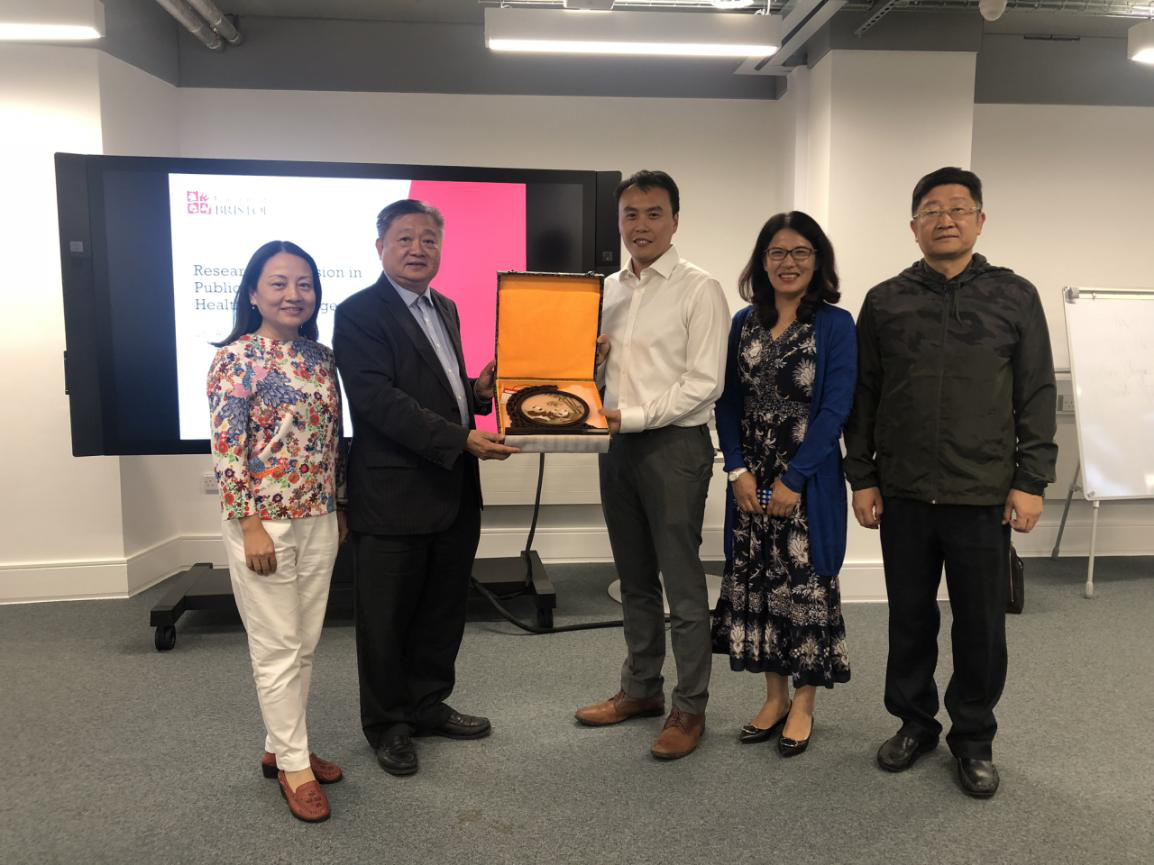 王庭槐校长代表学科建设项目组向布里斯托大学赠送学校纪念品