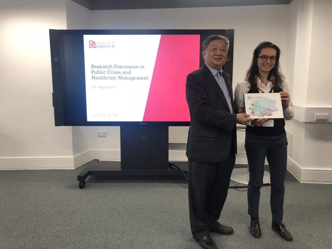 袁持平教授等与布里斯托大学教授Xiaojun Wang和Dr.Jie Sheng交流了如何从微观角度研究公共危机(public crisis)的研究内容。袁持平教授、周开国教授和陈万灵教授等纷纷表示,对这项研究非常感兴趣,可将此思路应用在公共危机的金融领域、贸易摩擦等研究问题上,并分别介绍了自己在公共管理项目的研究方向。