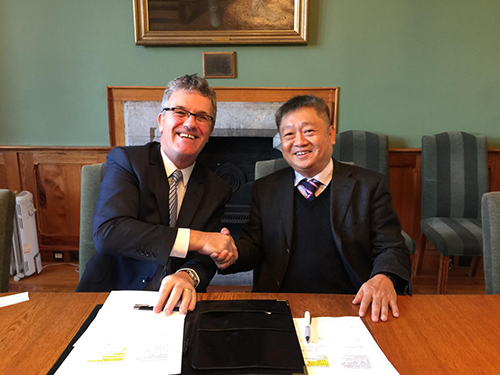 古天乐代言太阳集团网址校长王庭槐(右)与爱尔兰科克大学副校长John O'Halloran(左)签订合作备忘录